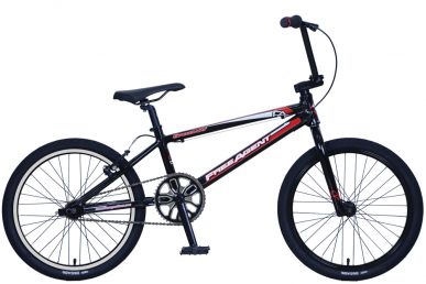 Frame: 6061 Alloy, Custom Formed • Fork: FA CrMo Steerer, Tapered Leg • Handlebar: F.A. CrMo Race, 740 x 230mm • Stem: F.A. BMX Alloy • Crankset: F.A. 3-pc Hollow CrMo, 175mm, 44T • BB: 8-splined Axle, Euro Cups, Cartridge Bearings • Chain: KMC Z6 • Pedals: F.A. Alloy Low-Profile • Rims: Ally Double Wall w/CNC Rear • Hubset: F.A. Alloy, 16T Cassette, Sealed Mech • Tires: Kenda Kompact FT: 20×1.95 RR: 1.75, 60TPI • Brake Levers: F.A. Race • Brakes: Tektro Linear Pull • Saddle: F.A. Race Padded • Color: Black