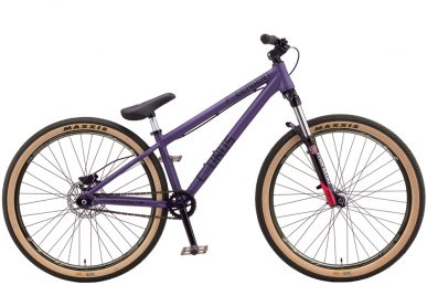 Frame: 6061 Alloy • Fork: Manitou Circus Sport 100mm x 20mm • Handlebar: Alloy Riser, 760mm x 30mm x 31.8mm • Stem: Alloy Forged Jumper • Crankset: F.A. 3-pc Hollow CrMo, 175mm, 28T • BB: 8-splined Axle, Euro Cups, Cartridge Bearings • Chain: KMC Z1 Narrow • Pedals: F.A. Low-Profile • Rims: Weinmann U32 Disc, Double Wall • Hubset: Alloy Disc Nutted 14T Cassette • Tires: Maxxis DTH High Pressure, FT: 26×2.3 RR: 26×2.15 Folding, 60TPI • Brake Levers: Shimano MT200 Hydraulic Brakes: Shimano MT200 Hydraulic Disc, 160mm Rotor • Saddle: F.A. Padded Jump w/Integrated Post • Color: Matte Purple