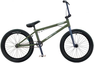 Frame: Full CrMo, Affi x Rotor • Fork: F.A. Full CrMo Heat Treated Tapered Leg • Handlebar: F.A. Design CrMo, 9” x 740mm w/Tapered X-Bar • Stem: F.A. Alloy Top Load • Crankset: F.A. Mid 3-pc Hollow CrMo, 175mm, 25T • BB: Mid Cartridge Bearings, 8-Spline • Chain: KMC S1 • Pedals: F.A. Low-Profi le • Rims: Weinmann FT: Viper RR: Bravia Double Wall • Hubset: F.A. Alloy Ft 3/8”, Alloy RR w/9T Driver, 14mm Axle • Tires: Kenda Admiral, 20×2.4, 60-TPI, 100 psi • Brake Levers: Tektro Alloy 2F • Brakes: Tektro FX-350R, U-Brake • Saddle: F.A. Padded Jump w/Integrated Post • Color: Matte Army Green