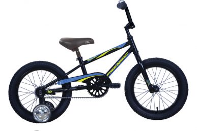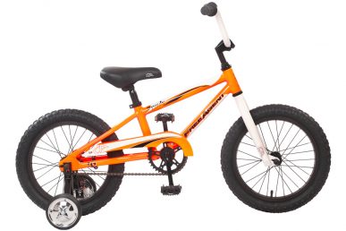 Stand over Height • Fork: Free Agent Tapered Leg • Headset: Steel, Black • Handlebar: BMX, 560mm • Stem: BMX Alloy • Grips: Kraton 100mm • Crankset: 1-pc forged 4-1/2″, 36T Chainwheel • BB: 1-pc Ball Bearing • Chain: KMC S1 • Pedals: Nylon Platform Jr. • Rims: Alloy, 28x28H • Hubset: Steel/Coaster • Spokes: 14G Black 28×28 • Tires: Knobby, 16×2.125″ • Cog: 18T Sprocket • Brakes: (R) Coaster • Saddle: Free Agent Jr. Padded • Seatpost: Free Agent, 25.4x200mm • Other Features: Bell, Training Wheels, Handlebar Pad • Colors: Bright Orange, Black